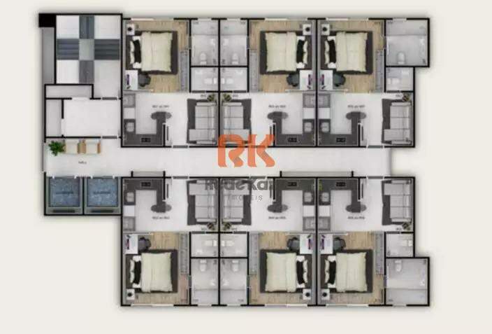 01 quarto com suíte. Lazer com Área de lazer com espaço gourmet;; Bicicletário; Snack bar; no ultimo andar do prédio. Áreas comuns no nível do subsolo e 1° pavimento contendo lavanderia coletiva, vagas de estacionamento de uso comum. VALOR PARA VENDA: R$ 370.000,00