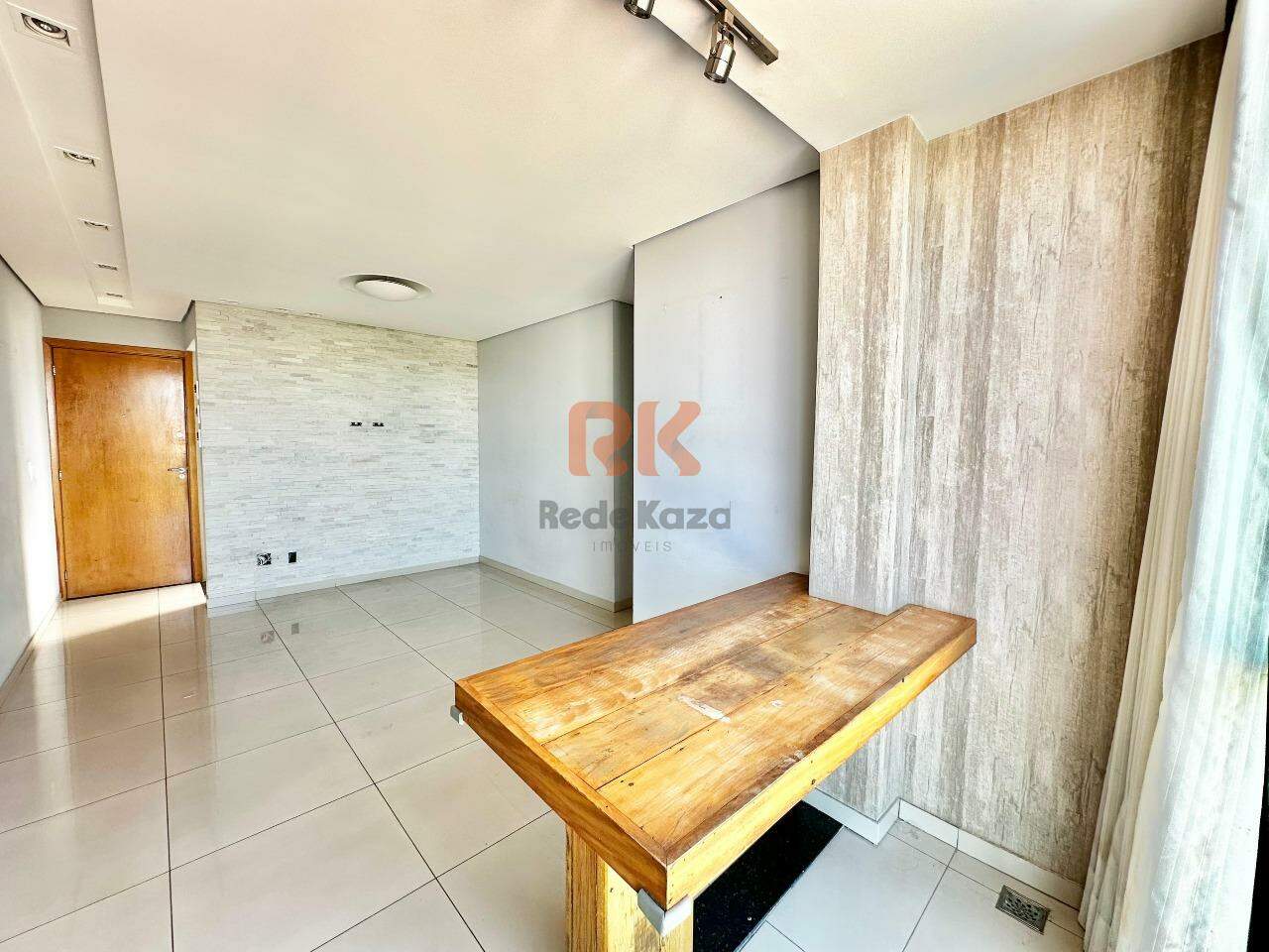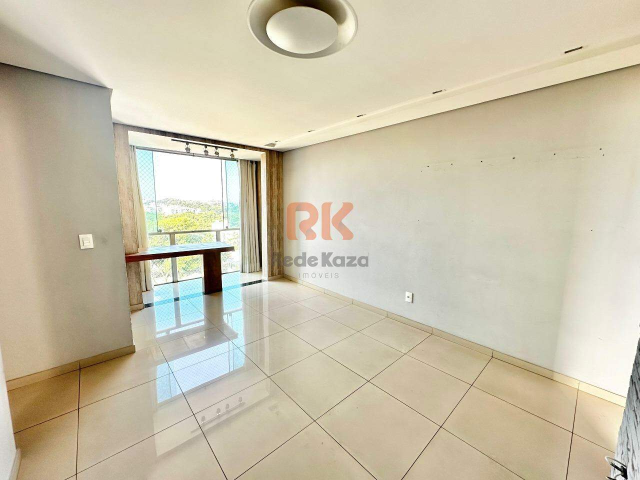 - Sala: Ampla, com varanda e piso em porcelanato.