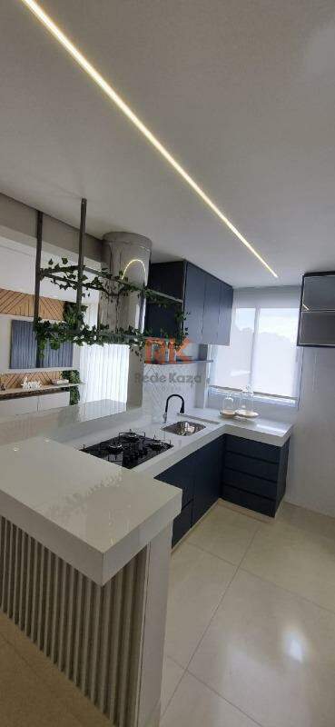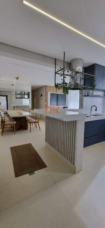 - Cozinha em conceito aberto, com bancada central de nanoglass