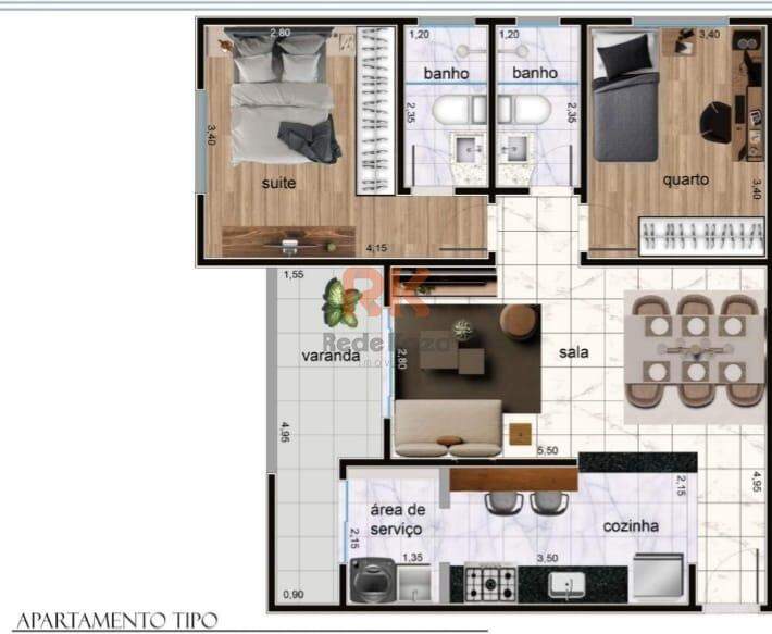 São 69m² de área construída e 47m² de área externa;