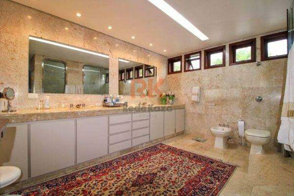 Casa com rea total de 800m², varanda, linda vista panormica, ótimo acabamento de luxo, 5 salas, reformado, iluminaço planejada, armrios nos quartos, 2 suítes, banho de empregada, quarto de empregada, rea de serviço independente, despensa, banheira de hidromassagem, escritório, 9 vagas de garagem.O lote tem 2000m², geometria retangular, inclinaço plano.Infraestrutura piscina, quadra de esportes, sauna, espaço gourmet, churrasqueira, aquecimento solar, cmeras de segurança, tem sistema de alarmes, interfone, possui guarita, porto eletrônico, gs canalizado, rua plana. localizaço privilegiada e próximo ao comércio