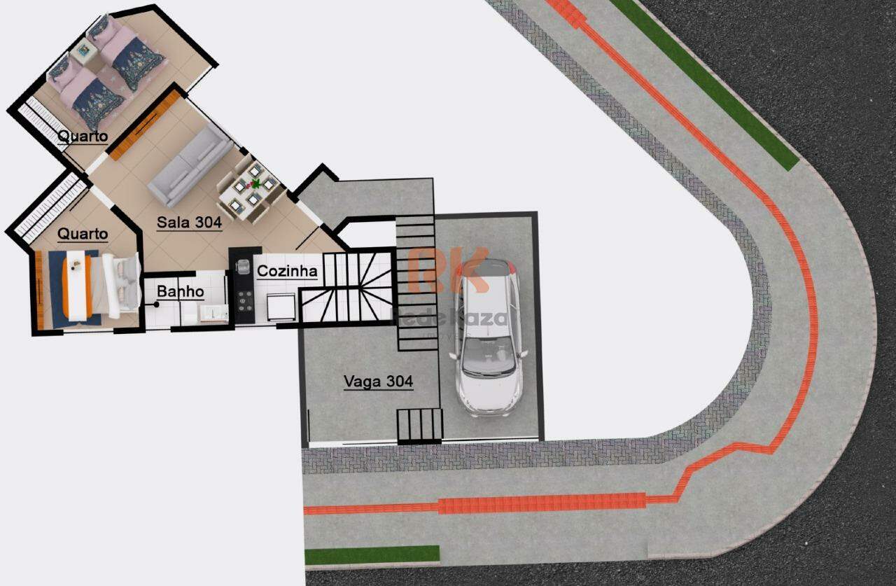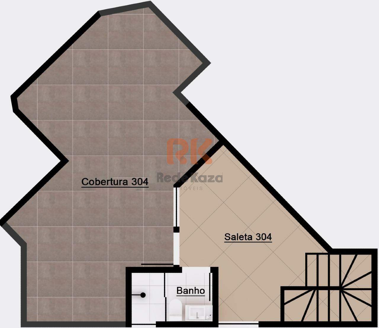 Cobertura disponível para venda Área total: 124m², sendo área interna: 65m², área externa: 59m² | 2 quartos | 1 vaga