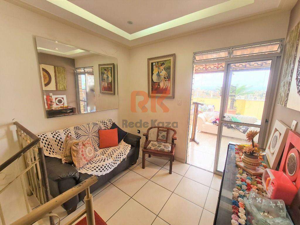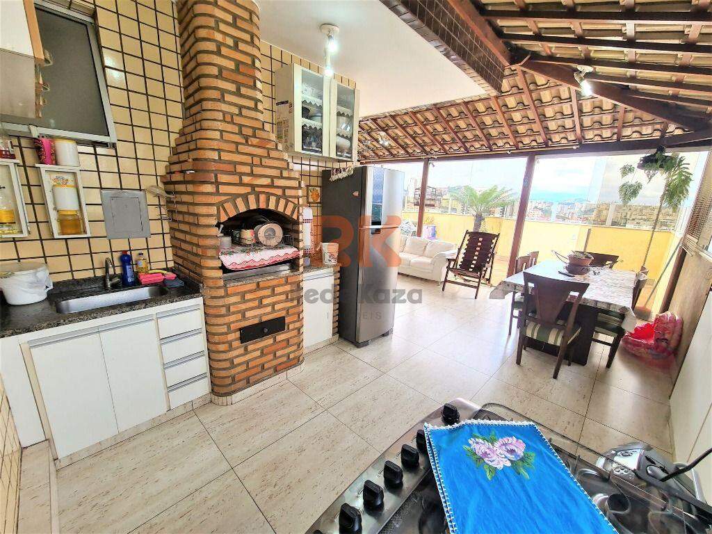 Prédio individual, 2 vagas livres cobertas, três lances de escada. Cobertura com 142m² no terceiro andar1° pavimento Sala para dois ambientes Cozinha com armrios 3 quartos com armrios, sendo um suíte e outro com varanda Banho social.2° pavimento Sala Banheiro Lavanderia Terraço com churrasqueira parte em fechamento de telhado e parte descoberta com linda vista definita.